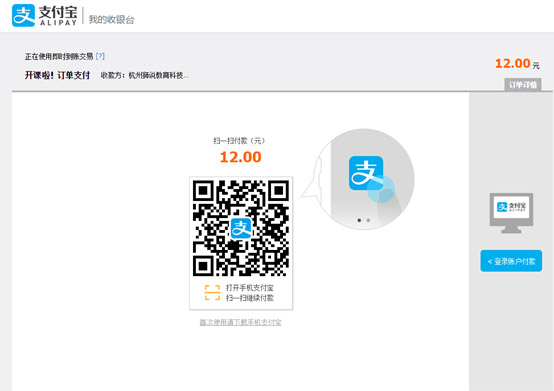 1.支付寶支付:可手機掃碼或在網頁上登錄支付寶賬號付款,完成后點擊“支付完成”。